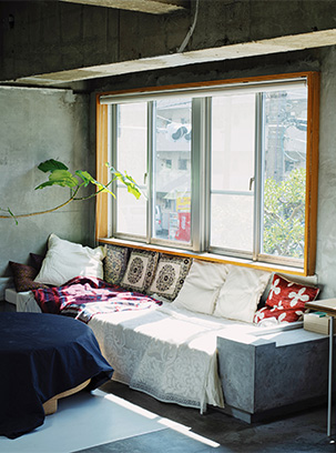 明るい窓辺が主役。モルタル床のリノベーションリビング
