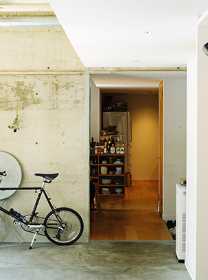昔の家の素材を活かした、コンクリートとステンレスのキッチン