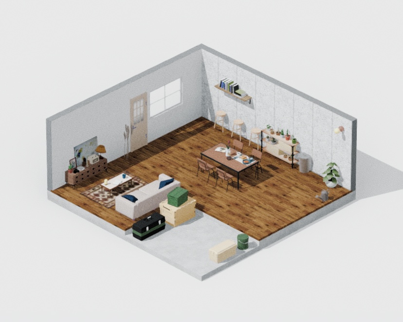 様々な色が同居した、色彩あふれる広々ワンルーム