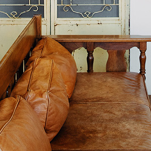 1960年代のアメリカ製のソファ。もともと布張りだったものを革に張り替えてリメイク。