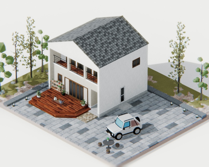 あえてのグレー塗装。和モダンなキューブ型の外観