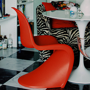 ビビッドカラーとデザインが目を惹く「パントンチェア」が、リビングのアクセントに。