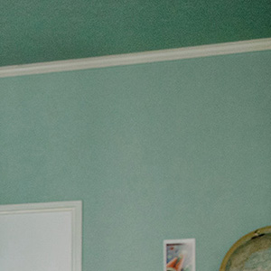 ミッドセンチュリーの家具のイメージに合わせて、壁と天井はミントグリーンに。